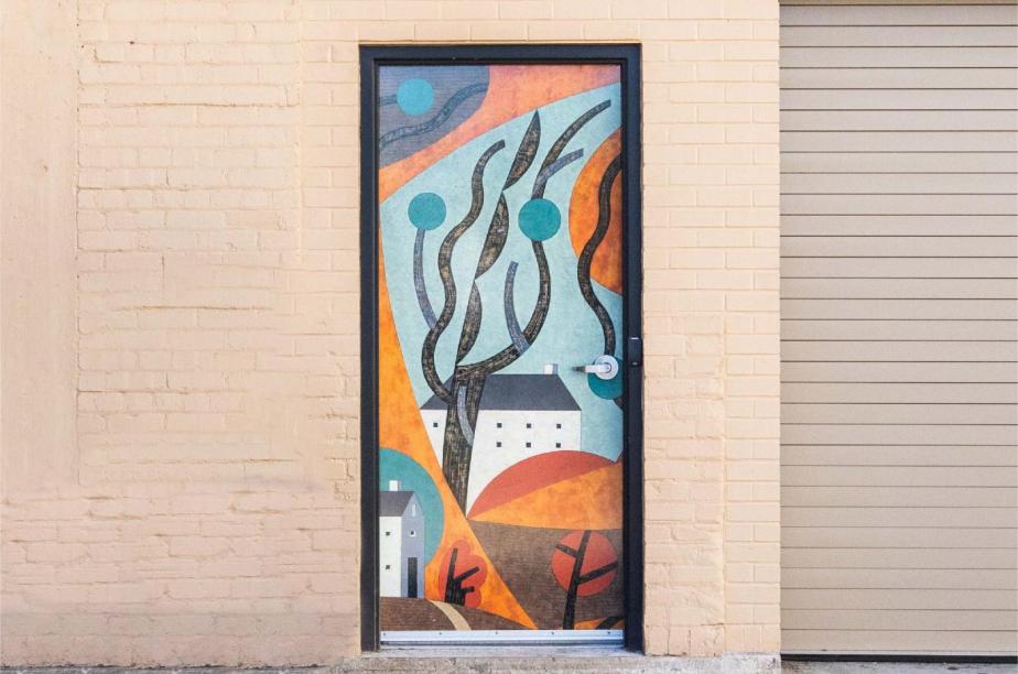 The Alley Doors project repurposes alley and back-of-building doors into a discovery-driven urban gallery. Participating downtown property and business owners can browse an online database of artwork created by Kansas artists to select artwork to be featured on their alley doors. This artwork will then be printed on vinyl and applied to their alley or back-of-building doors. Explore the urban core and discover these unique doors using the list below and our interactive map.