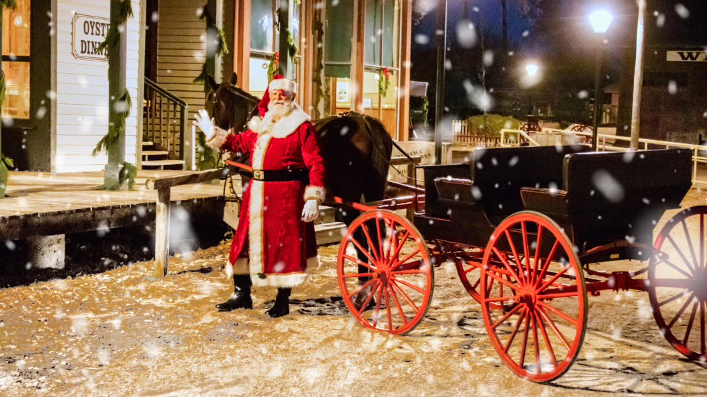 When the weather outside is frightful, Cowtowns lamp-lit, carol-filled streets will warm you up!