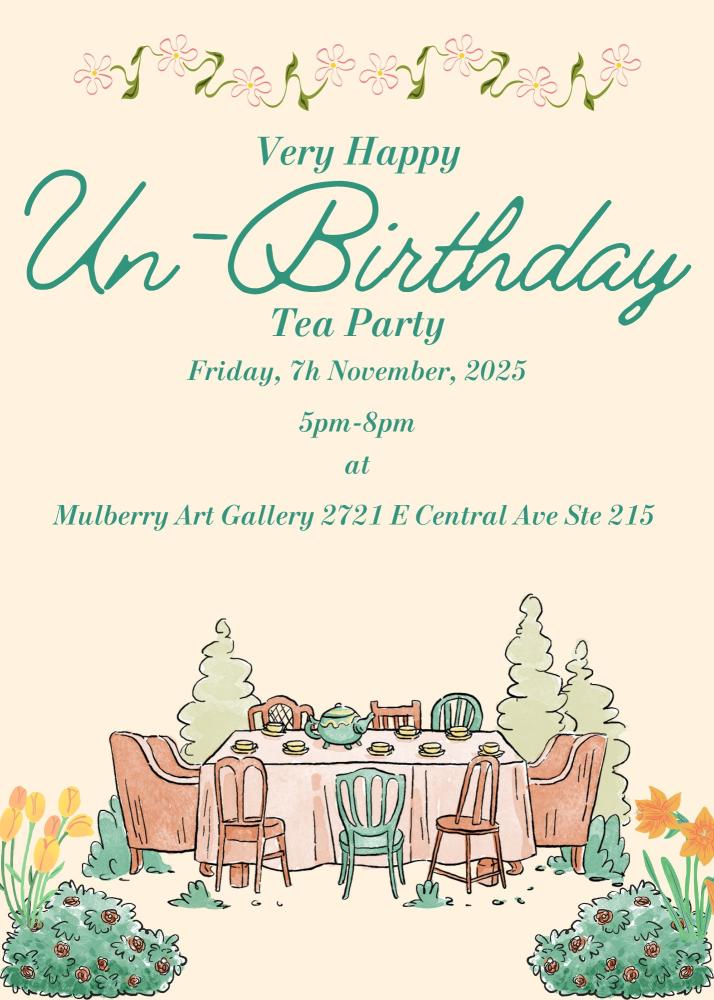 Alice in Wonderland would not be complete without a Tea Party! Join us for the collaborative event "A Very Happy Un-Birthday" showcasing paintings by Dominique Joiner and Tea by Naquela Marie.