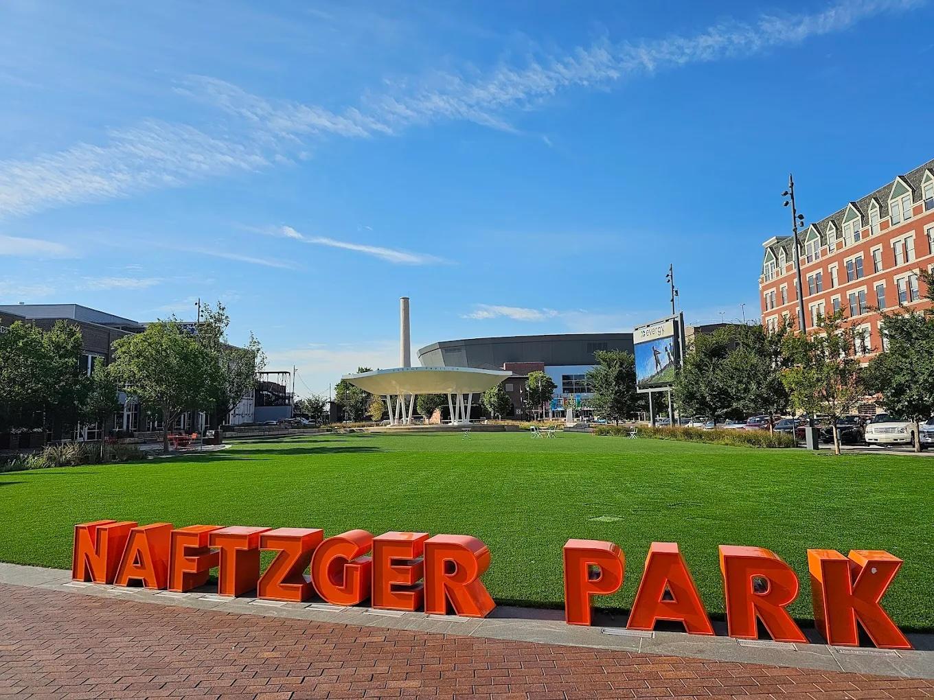 Naftzger Park Naftzger Park is a vibrant downtown gathering place featuring open lawns, shaded seating, and a built-in stage that regularly hosts events, making it a lively hub for community and connection.